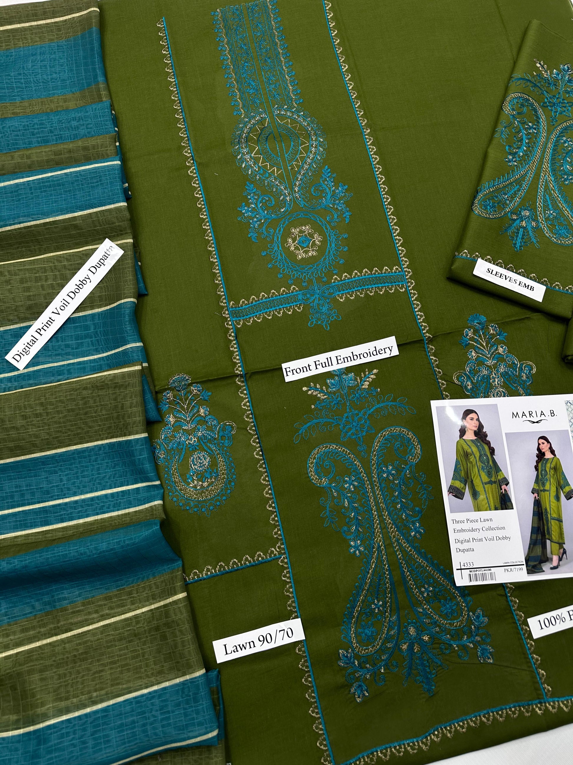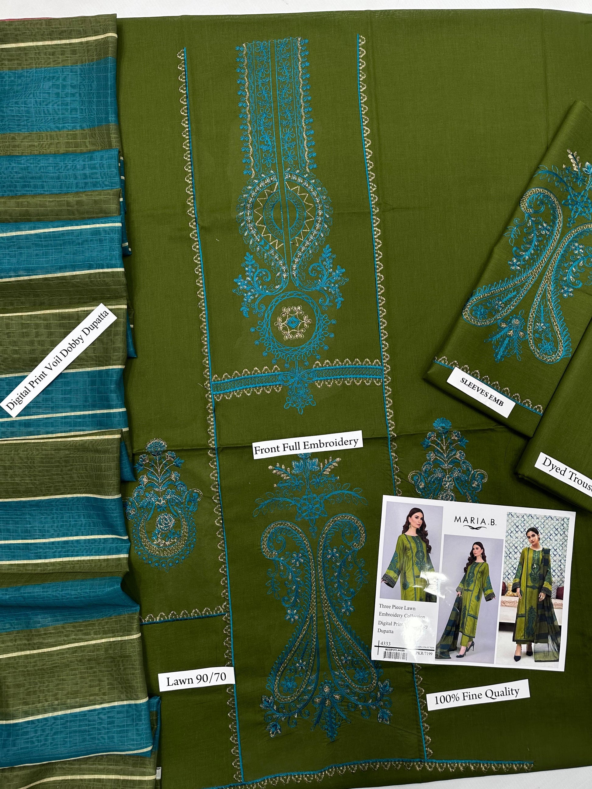 Maria B - 3PC LAWN EMBROIDERED SHIRT WITH MANAAR PRINTED DUPATTA AND TROUSER