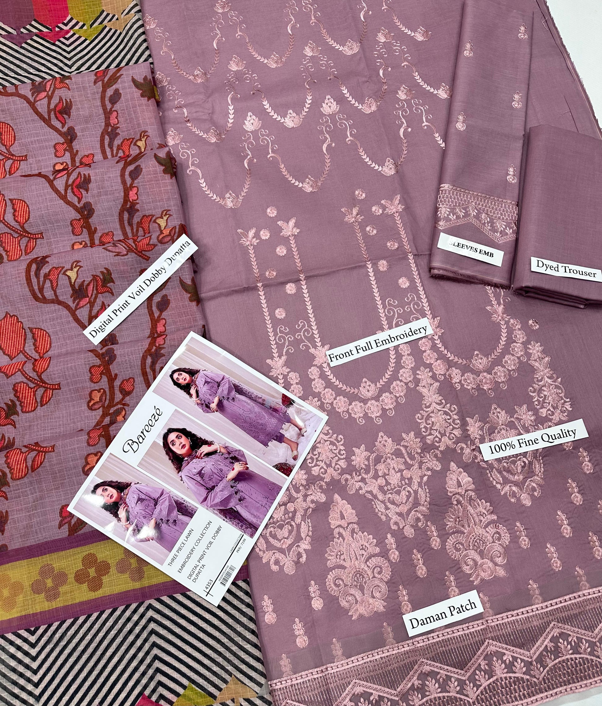 Bareeze - 3PC LAWN EMBROIDERED SHIRT WITH MANAAR PRINTED DUPATTA AND TROUSER