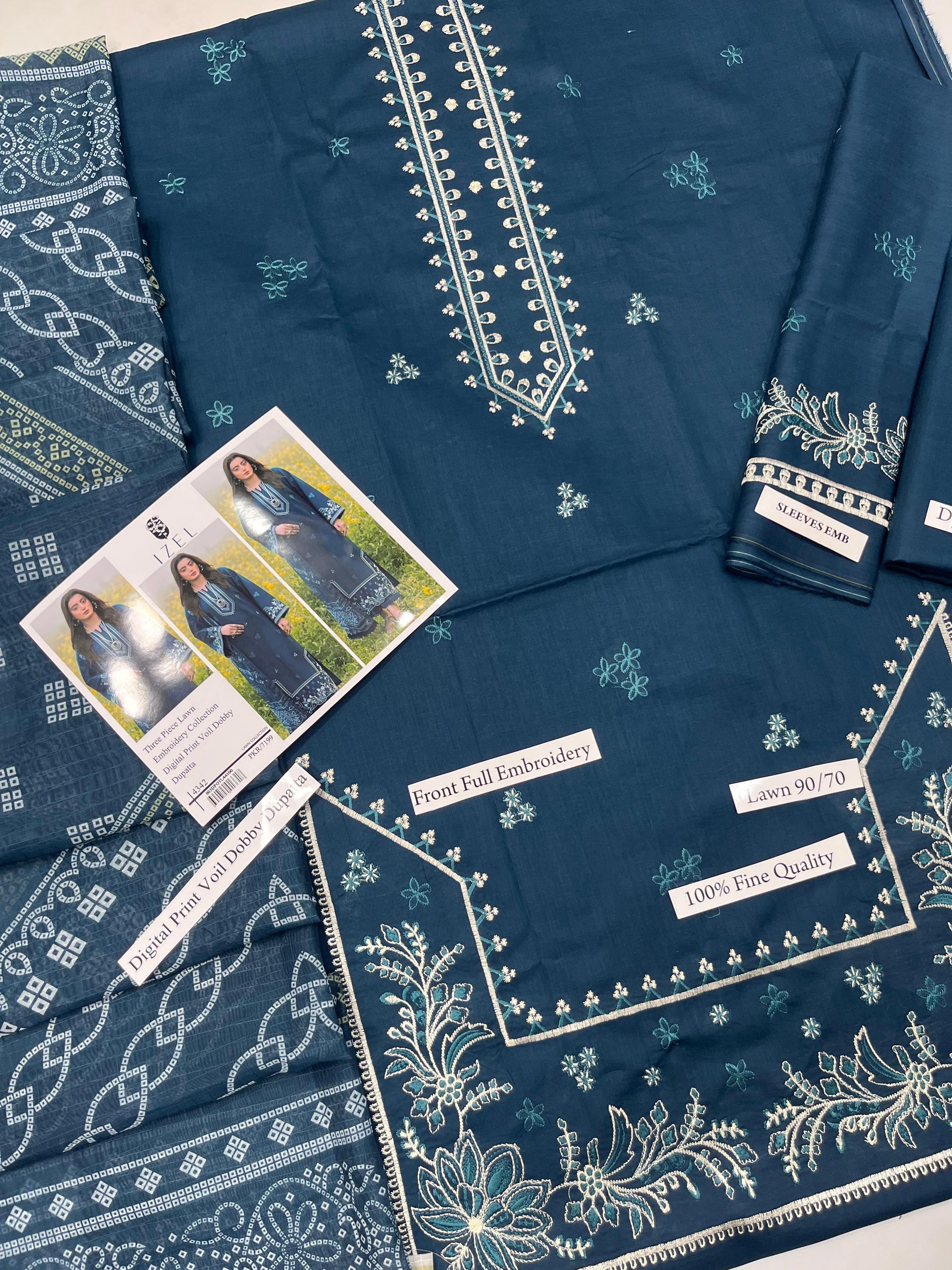 IZEL - 3PC LAWN EMBROIDERED SHIRT WITH MANAAR PRINTED DUPATTA AND TROUSER